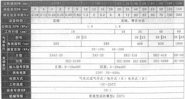 三、ZJHPF型氣動(dòng)襯氟調(diào)節(jié)閥主要技術(shù)參數(shù)(氣動(dòng)/電動(dòng))