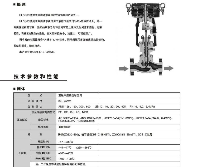 HLS小口徑單座調節閥 HTS單座調節閥 HSC籠式單座調節閥 HPS高壓單座調節閥 HCB平衡籠式調節閥 HCE籠式調節閥 HPC高壓籠式調節閥