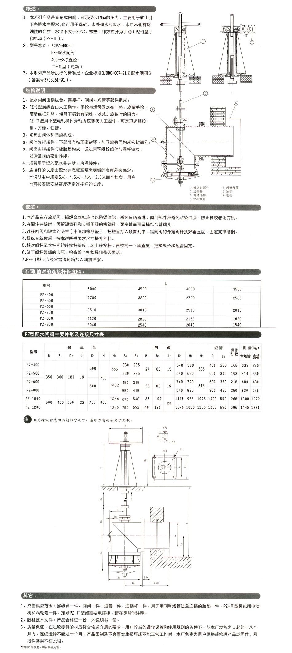 PZ型配水閘閥訂貨須知